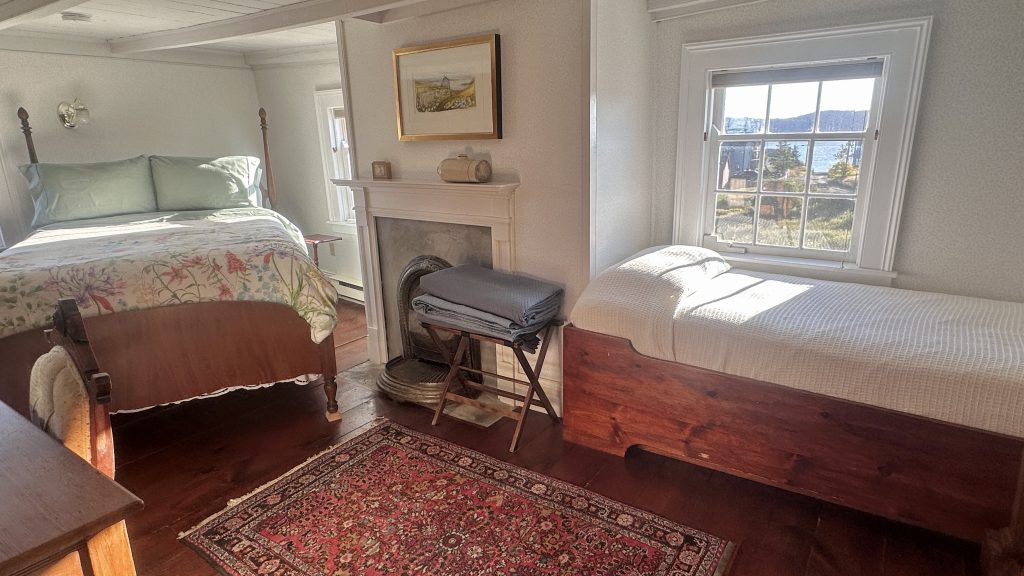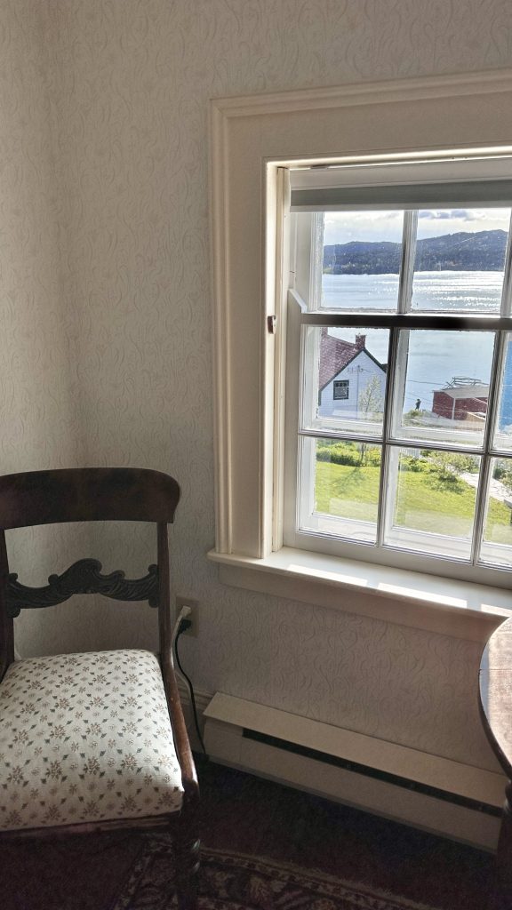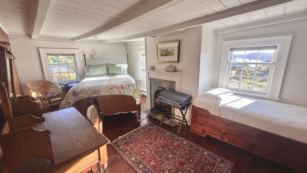 The Campbell Suite is located just a minute’s walk from the Twine Loft restaurant on a hill offering views of both Trinity Harbour and Fisher Cove. The main floor offers a spacious sitting room and dining room area. Both bedrooms (queen in one room and double /single bed in another) and both bathrooms are located on the second floor. A back patio offers a stunning view of the sunset over Fisher Cove with a fire table. There are two additional Loft rooms with a single bed each which can be made available for an additional $40 per night per room on top of the base rate.