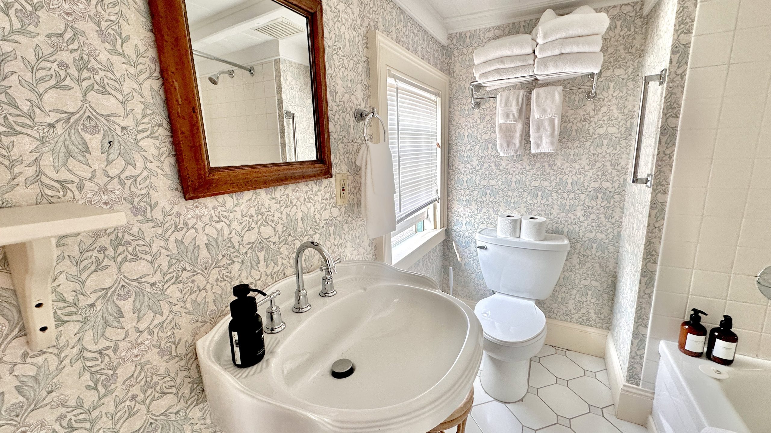 - Ensuite Bathroom: Full shower and tub with hand held shower head. Hairdryer, hand soap, soap bars, shampoo and conditioner provided. Towels and 1 bathroom provided.
