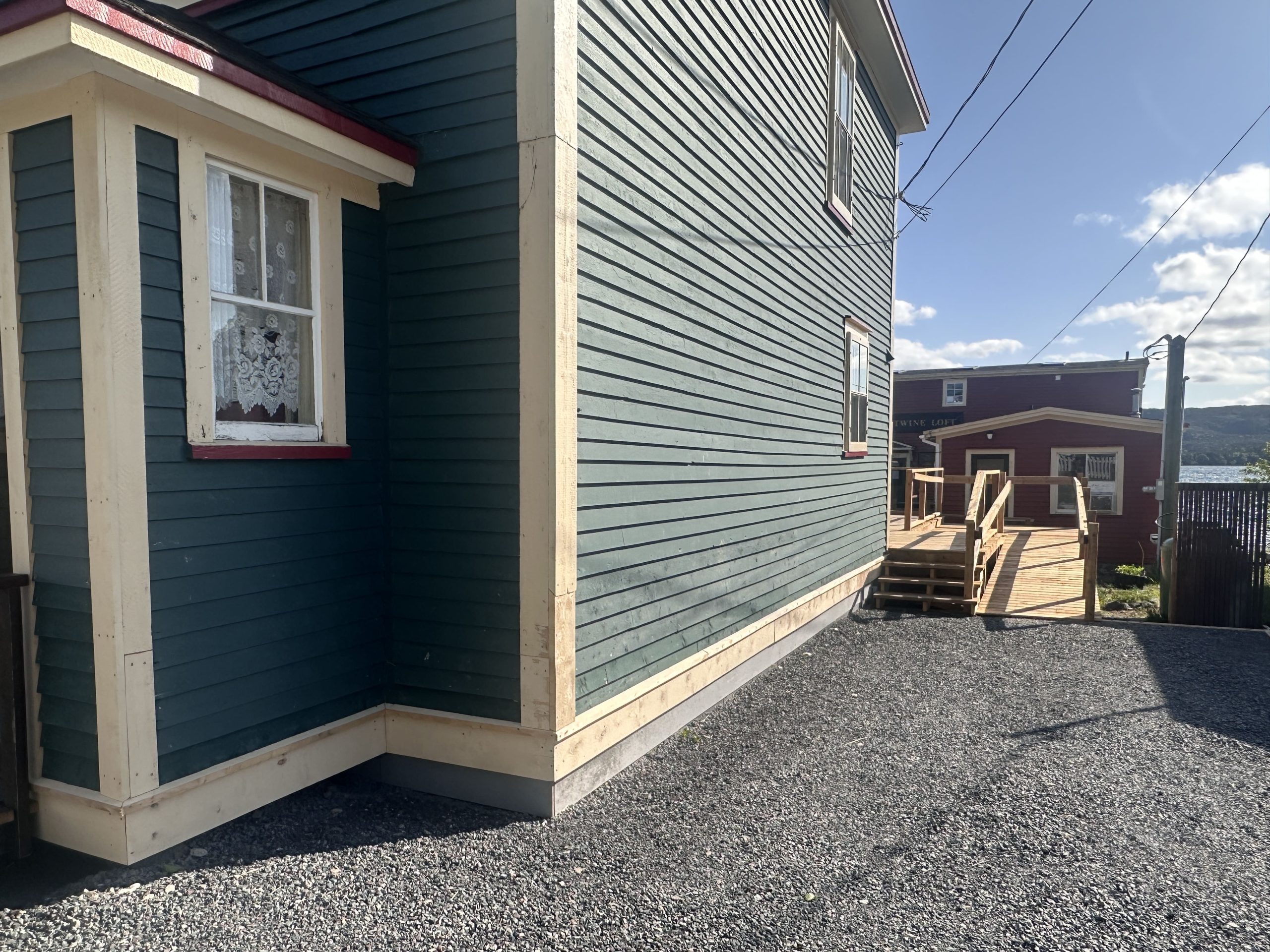 Room Location: The Studio Suite is located on the main floor of Barbour House. It is the only unit on the main floor and can be accessed by a ramp. The Studio has its own private entrance to the building. Guests of Trinity Room and Cove View Room enter the building from a separate entrance.