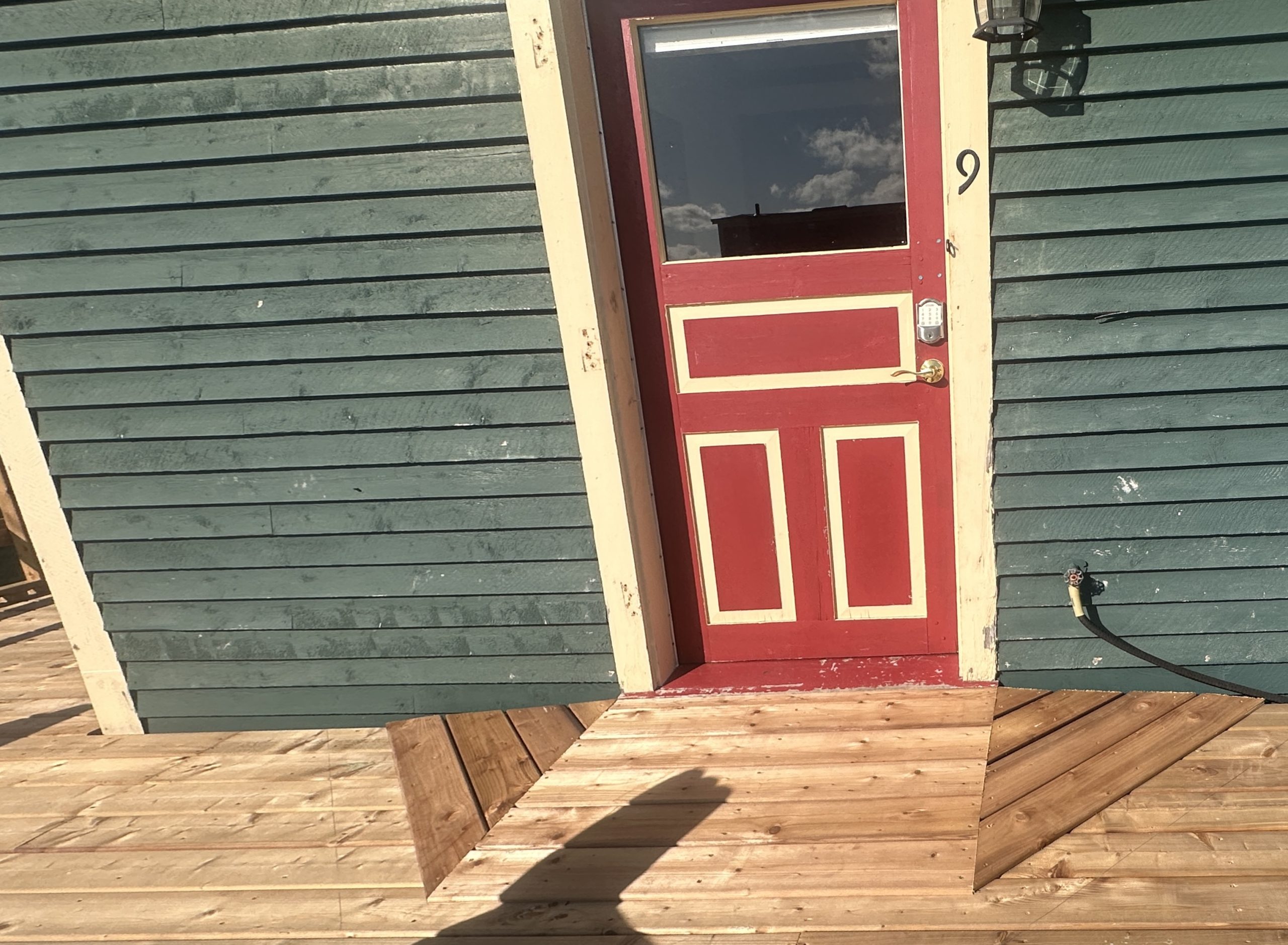 Please go to the Twine Loft for registration and to receive your codes. Should you have mobility concerns, please let us know and we can accommodate your arrival. To access your room you may park adjacent to the ramp that allows access to the decking.